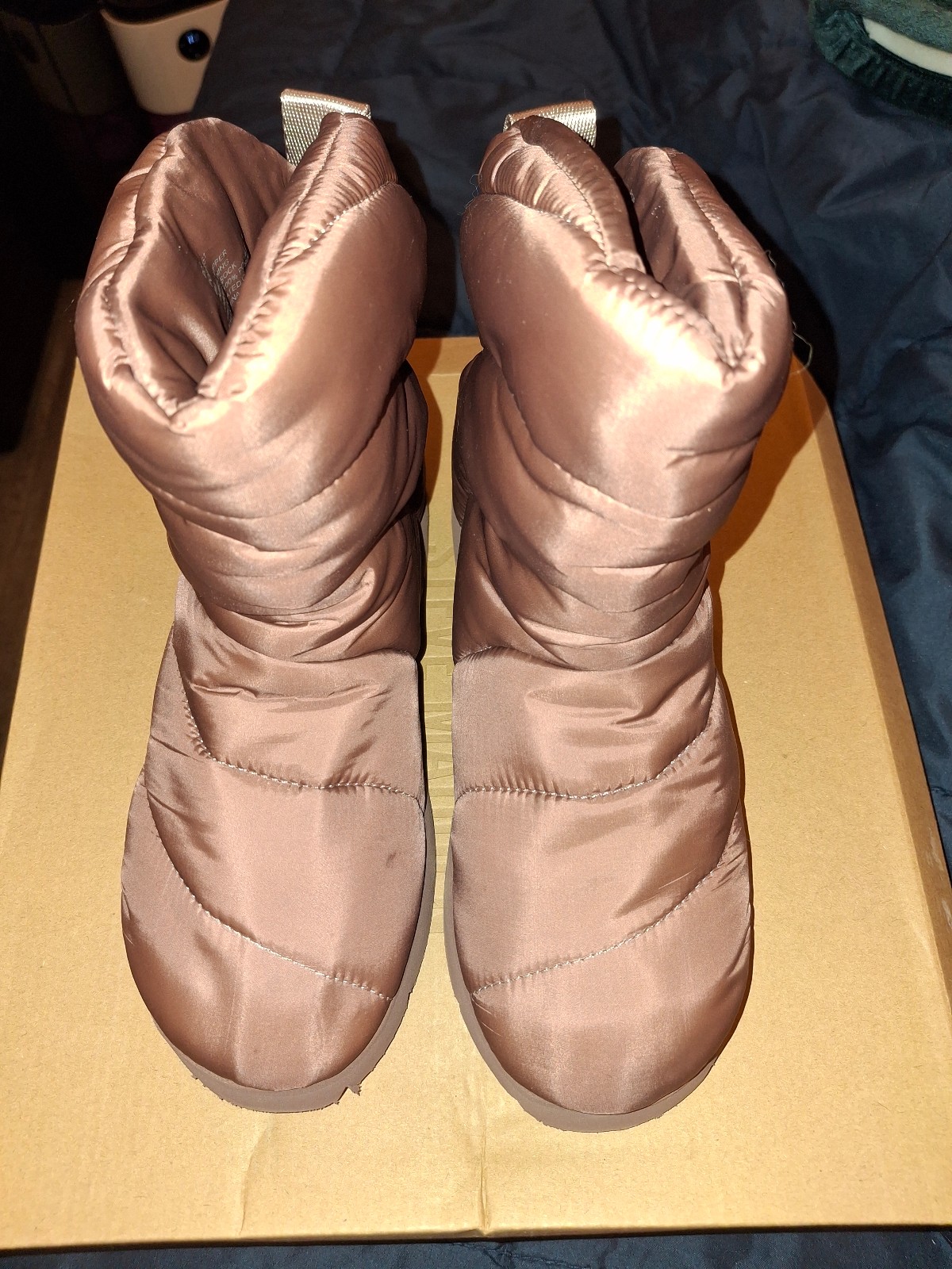 Brand new, dark mauve very pretty color, too small for me, tried on.. color is so subtle so pretty. Just dont fit me. Absolutely nothing wrong with them. Need a new home.